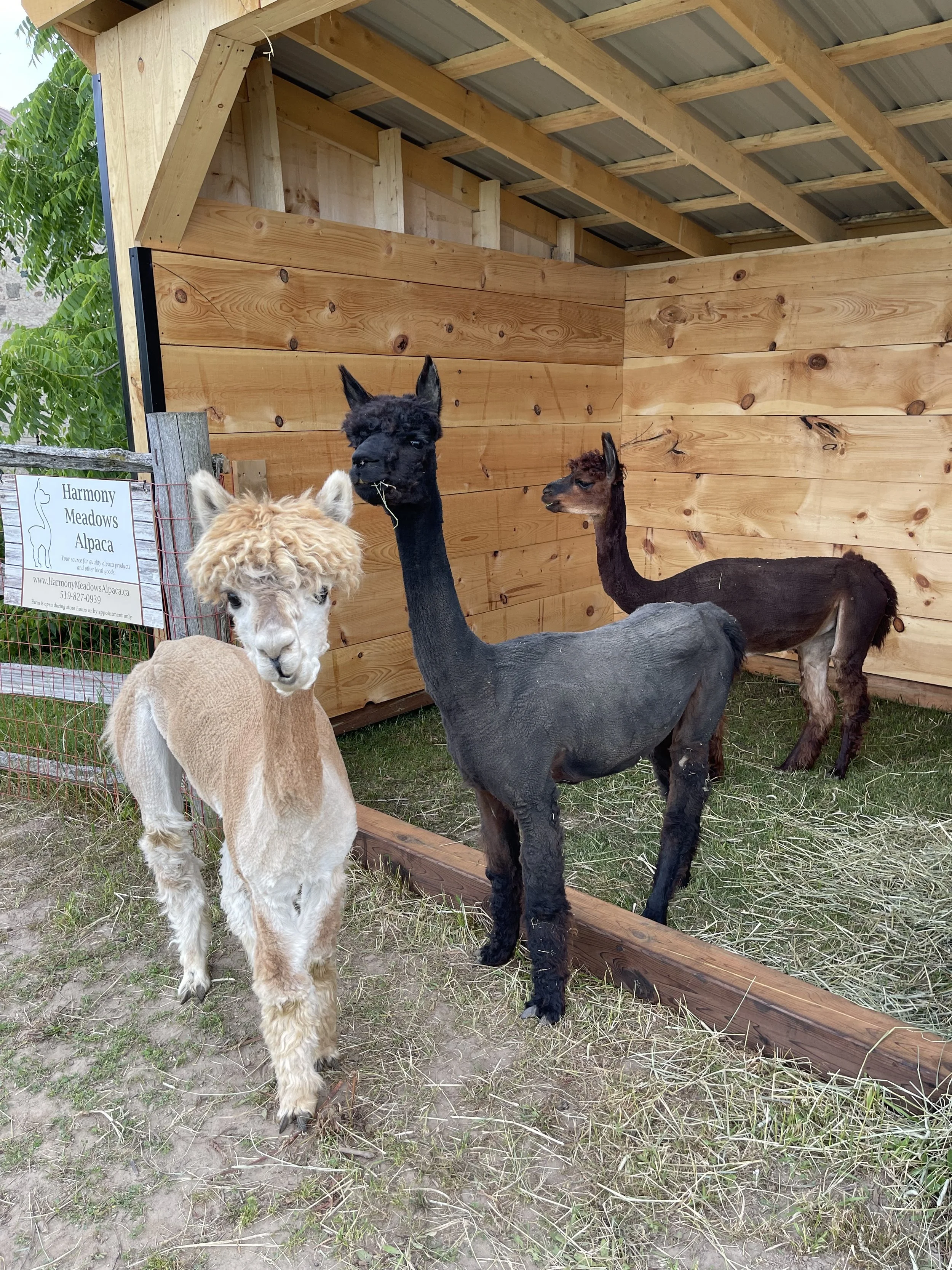 The alpacas are from Harmony Meadows where you can also book a guided tour to see their larger herd on their farm.